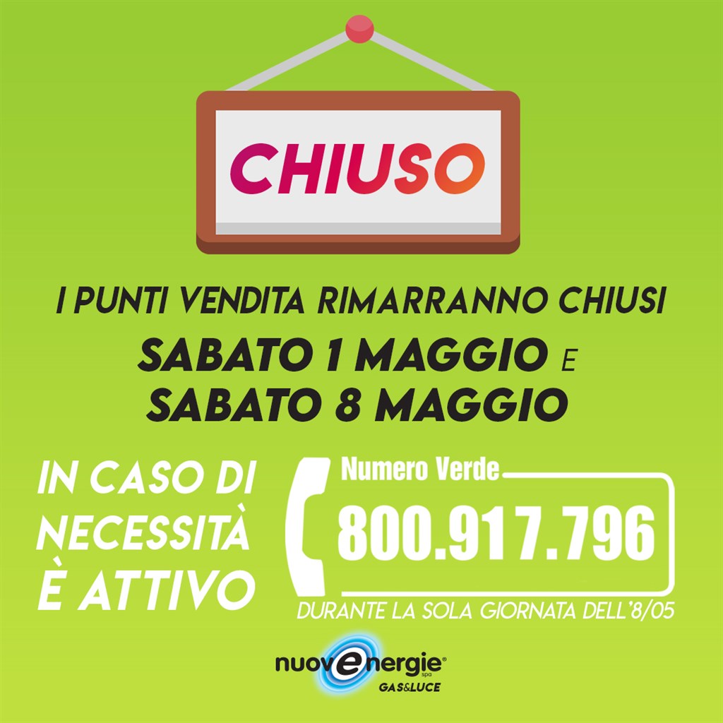 Vi ricordiamo che durante la giornata del 1/05 non sarà operativo anche il Numero Verde, il quale sarà invece regolarmente attivo il giorno 8/05.