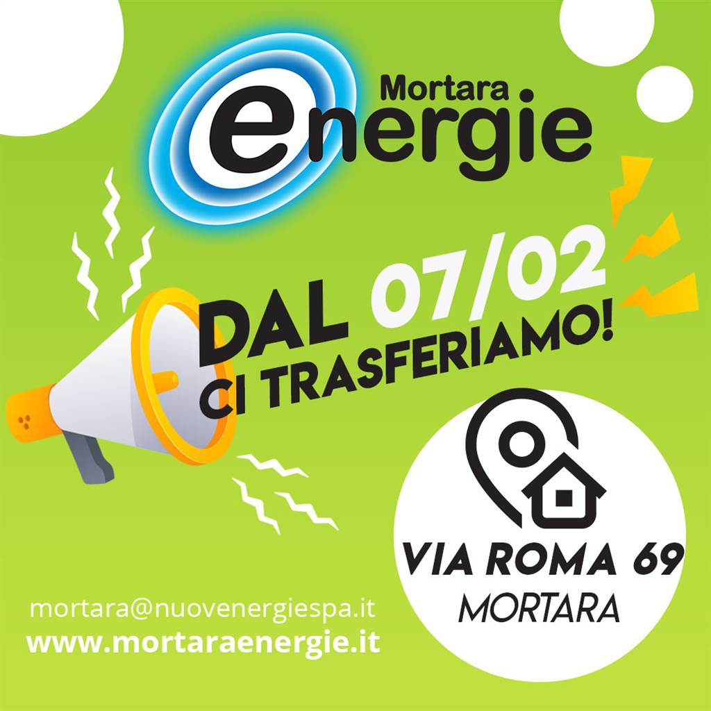 Da venerdì 7 febbraio il negozio di Mortara Energie si trasferisce da Corso Garibaldi 81 a Via Roma 69.